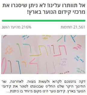 "אל תוותרו עלינו! לא ניתן שיסגרו את מרכזי קידום הנוער בארץ!" – תחת נושא זה נפתחה לפני ארבעה ימים בלבד עצומה הקוראת להימנע מסגירת תכנית הילה ופיטורי המורים, המנהלים והמנחים. היום (שני) העצומה עומדת על למעלה מ-21 אלף חתימות.