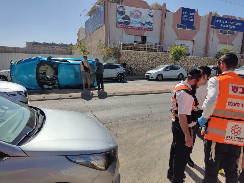 חובשי איחוד הצלה העניקו סיוע רפואי ראשוני בזירה לנהגת הרכב שהתהפך, כבת 30, שנפצעה באורח קל.