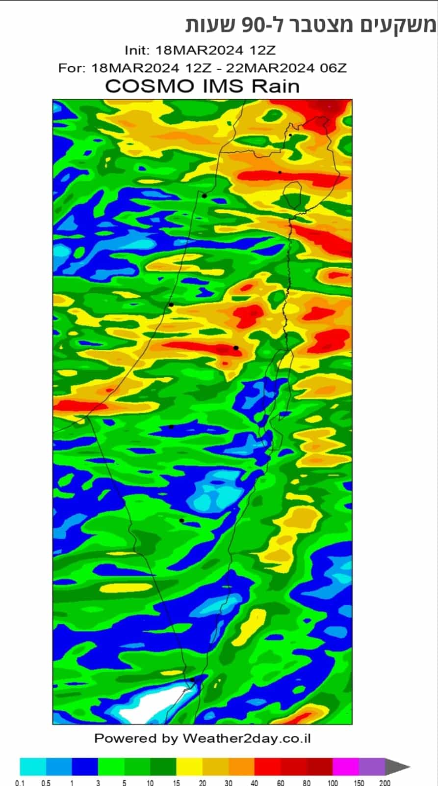 כבאות והצחה הודיעו על התראה מטאורולוגית – התראה מוקדמת על הצפות במישור החוף הצפוני, במישור החוף המרכזי והדרומי ובשפלה ב-19/03 מ-00.00 עד 13.00. כמות הגשם הצפויה 50 עד 75 מ"מ.