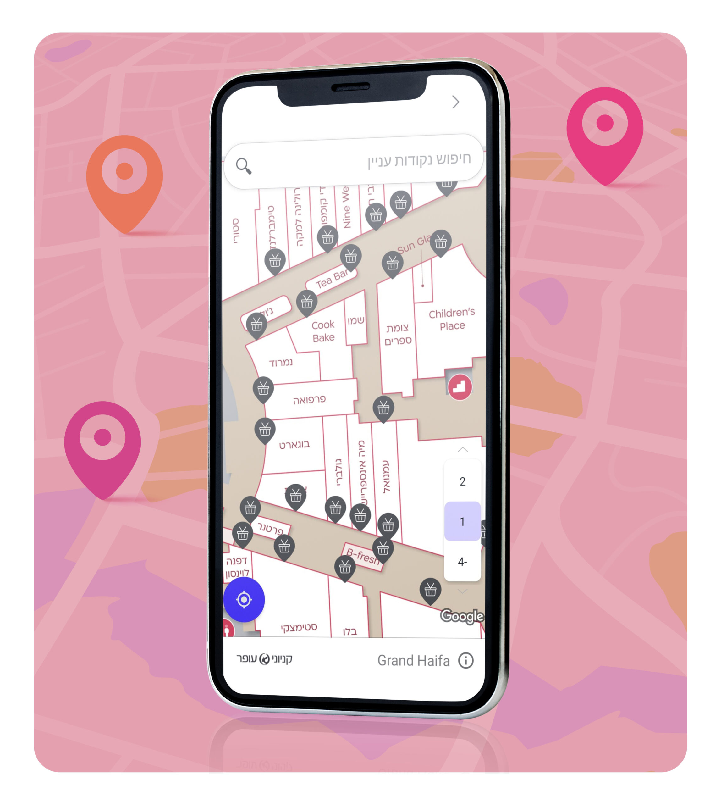 מערכת ניווט מהמתקדמות בעולם, המציעה מגוון יכולות המסייעות באיתור חנויות ומקומות בילוי, נגישות מהירה ומסלולים לנקודות עניין, מספקת מידע עדכני על אירועים, ומקומות בילוי, מתן הצעות ערך פרסונליות, מידע על מבצעים, ומגוון אפשרויות גמיפיקציה אחרות