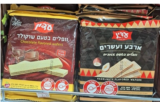 * שם המוצר: ארבע ועשרים – וופלים בטעם אגוזים / וופלים בטעם שוקולד מותג "עדין".