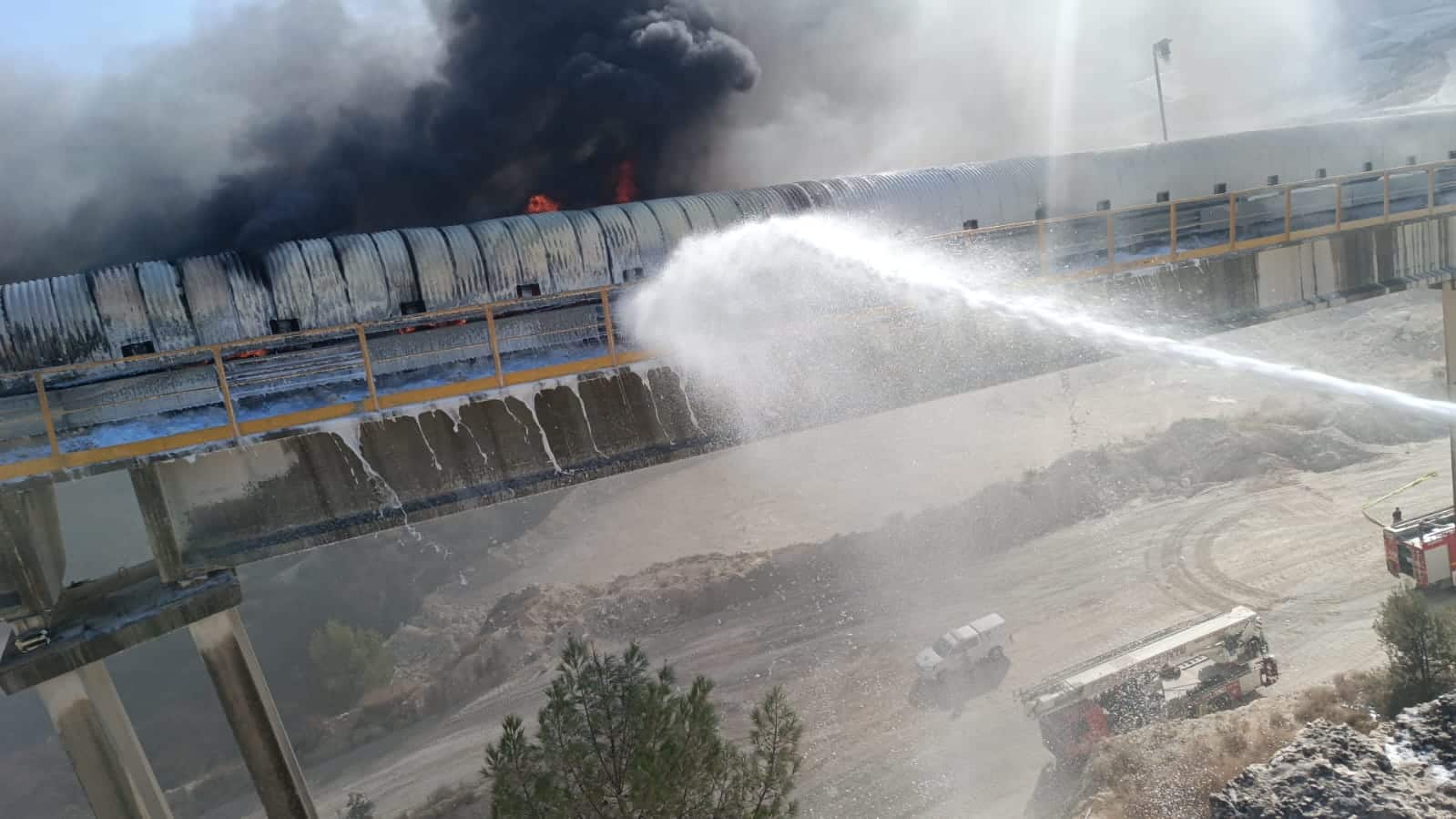 מפעל נשר- שריפה של מסוע באורך של כ800 מטרים ובגובה של כ15 מטר- הסיבות לפרוץ הדליקה נבדקות כעת.