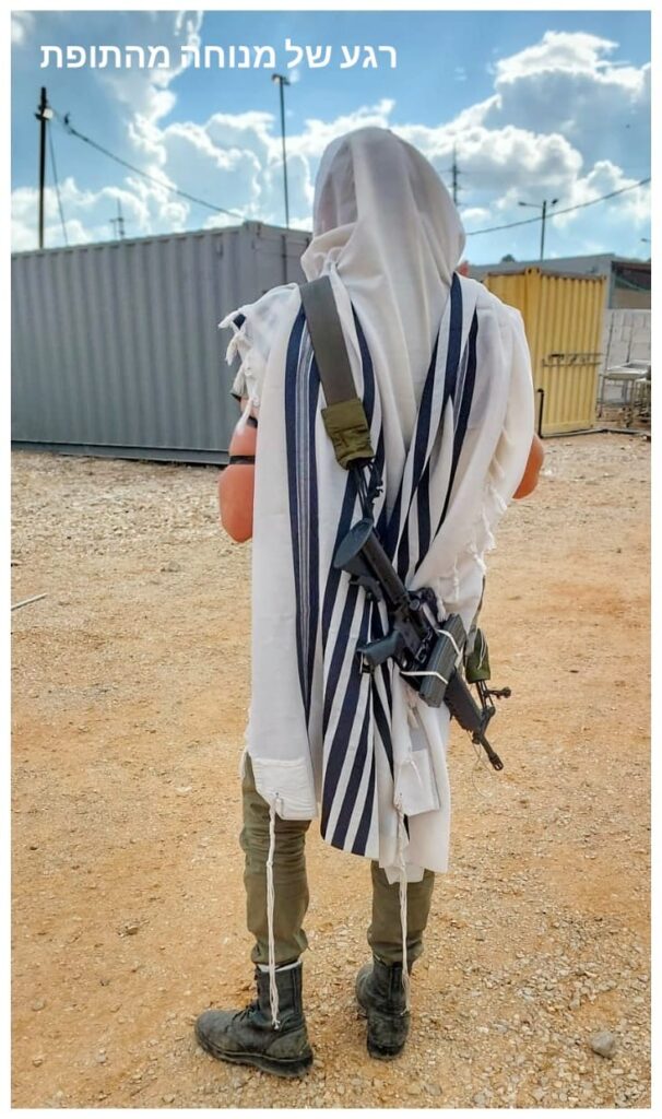 זו התמונה שכבשה את הרשת: חייל מילואים חרדי ביק"פ צפון, בתפילת שחרית אחרי לילה קשה במשימת זיהוי חללים.