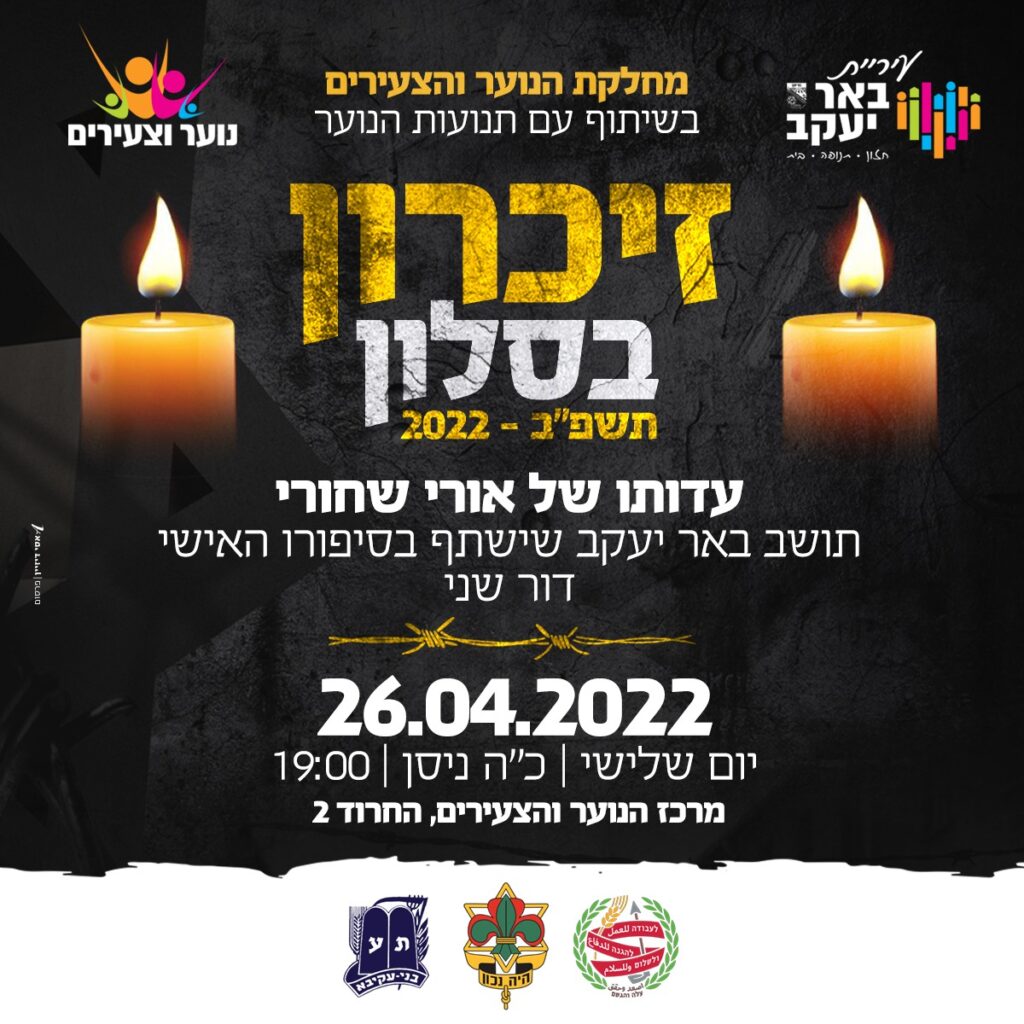 מחלקת הנוער והצעירים בשיתוף עם תנועות הנוער בבאר יעקב, מזמינה את הציבור לערב זיכרון בסלון בו תשמעו את עדותו של אורי שחורי, המשתף בסיפורו האישי כדור שני לשואה. שחורי, מנכ"ל ארגון מאמני ומאמנות הכדורסל ומאמן אישי, הוא תושב באר יעקב, דור שני לשואה, מספר את סיפורו של אביו, ניצול גטו בודפשט ומשפחתו בשואה. העלייה לארץ ישראל ומעבר משואה לתקומה.