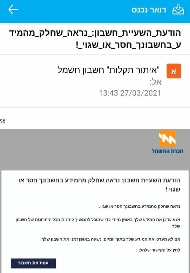 חברת החשמל באזהרה לציבור: אנא בידקו את המייל שלכם