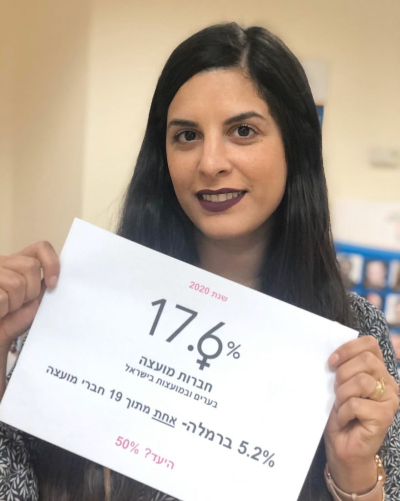 "ברמלה, אני האישה היחידה במועצה, אחת מתוך 19 חברי מועצה. זה חייב להשתנות. ייצוג נשים הוא לא רק על הנייר, המבט הנשי משמעותי לכל חוק, לכל שורה בתקציב, תקנון, חוקי עזר עירוניים, וועדות תכנון ובנייה, ועדות חינוך, וועדות כספים ועוד. אם אין אישה בוועדה- חצי מהקולות באוכלוסיה לא נשמעים. 8/3/2020 יום האישה הבינלאומי. מנהיגות ומובילות. משפיעות. שוות".