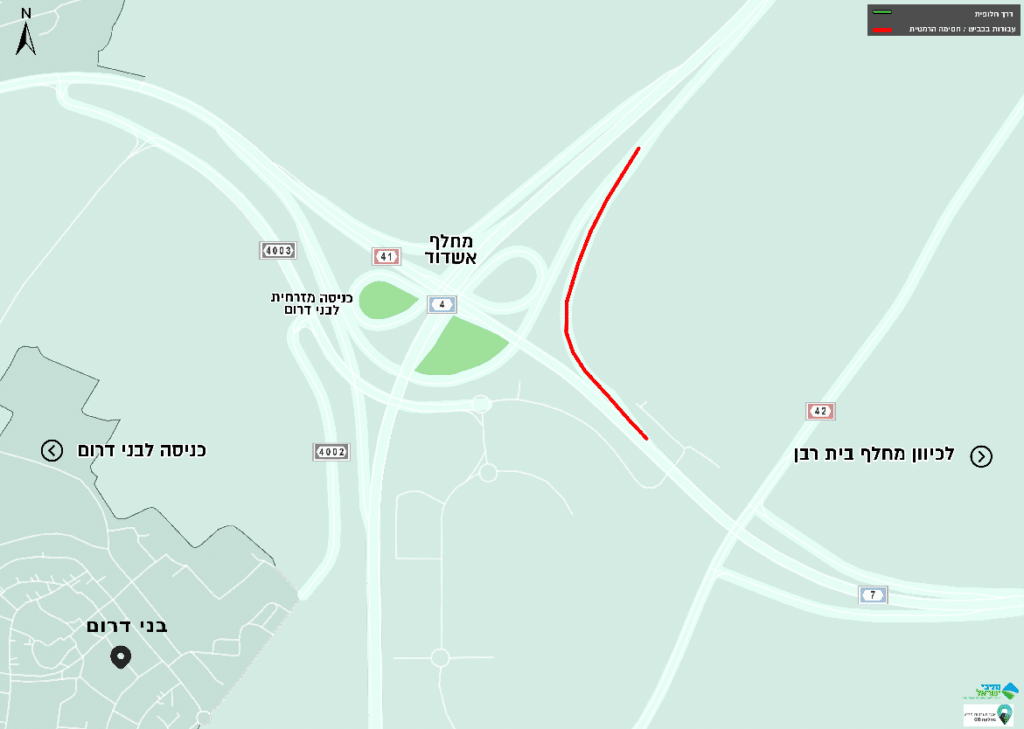 לתשומת לב הנהגים: בימים ראשון – שלישי, בין התאריכים 21-23.01.2024, החל מהשעה 23:30 בלילה ועד לשעה 05:00 בבוקר למחרת, תחסם לתנועה רמפת העלייה מכביש 7 למערב לכביש 4 לצפון.