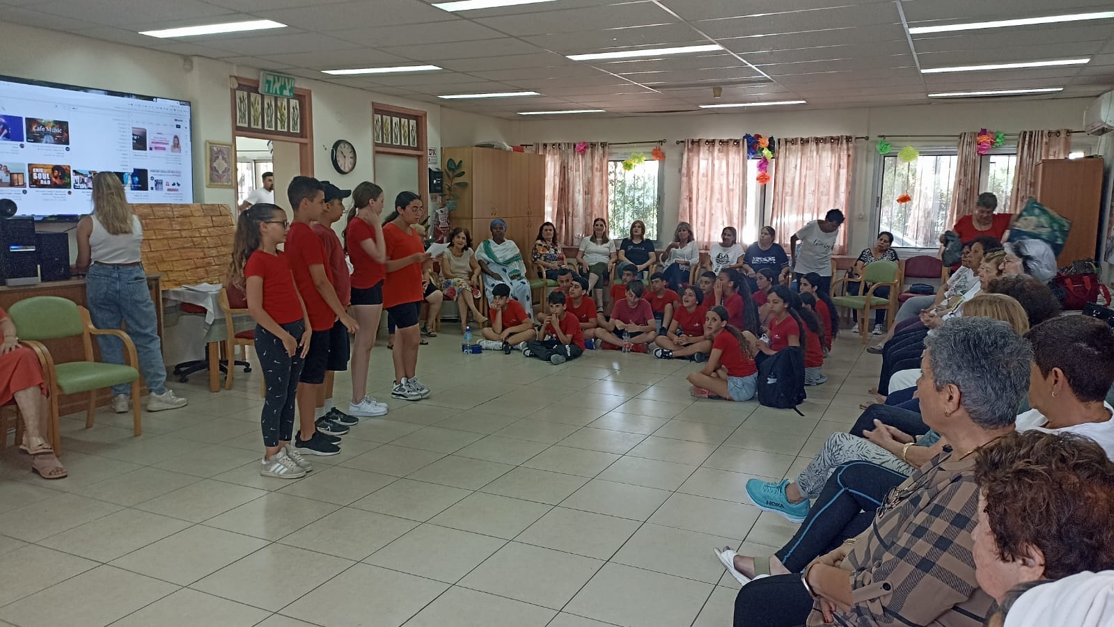במסגרת הפעילות משותפת הגיעו תלמידי כיתה ו'3, מלווים במחנכת קרין אזקיאל למועדון בית גיל הזהב בבאר יעקב, שם קיבלו את פניהם חברות המועדון כדי לציין ולחגוג בשירה וריקודים את יום ירושלים.