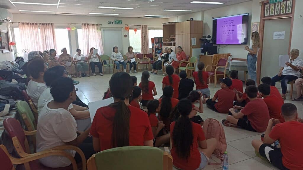 במסגרת הפעילות משותפת הגיעו תלמידי כיתה ו'3, מלווים במחנכת קרין אזקיאל למועדון בית גיל הזהב בבאר יעקב, שם קיבלו את פניהם חברות המועדון כדי לציין ולחגוג בשירה וריקודים את יום ירושלים.
