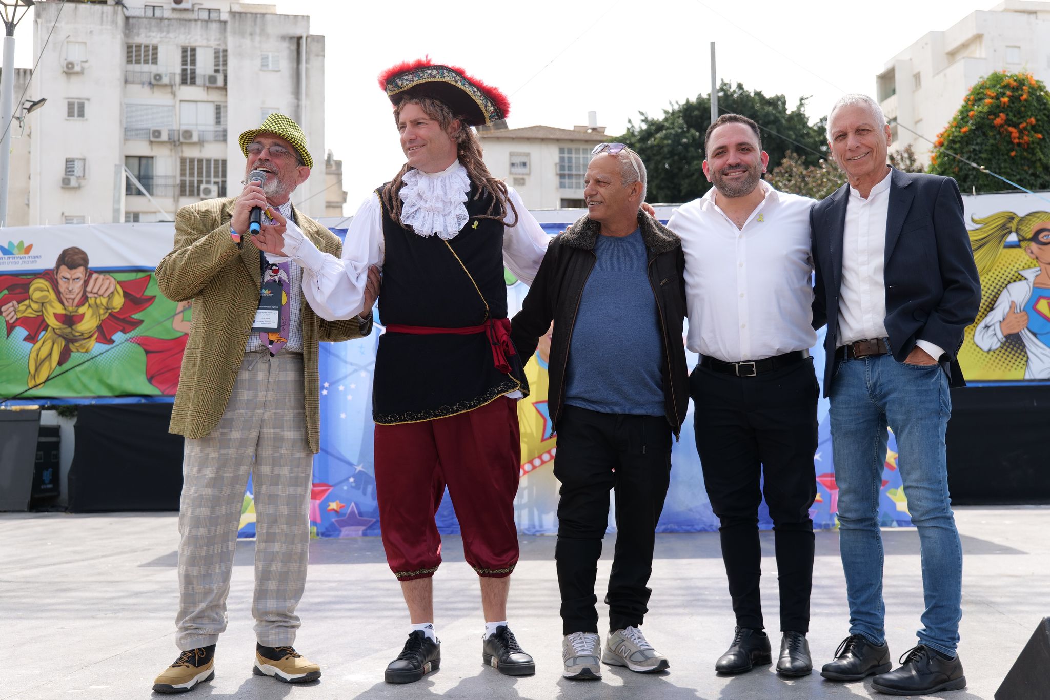את האירוע החגיגי הוביל ראש העיר הנכנס, מתן דיל, שעלה לבמה ובירך את התושבים: "את חג הפורים הזה אנחנו חוגגים בסימן הגיבורות והגיבורים שלנו, שנלחמים בחזית ובעורף. אנחנו ממשיכים לנצח ולשמוח למרות כל המורכבות והקשיים. מכאן אנחנו נושאים יחד תפילה להשבת החטופות והחטופים, החלמה מהירה לפצועים והצלחתם של החיילים היקרים שלנו".