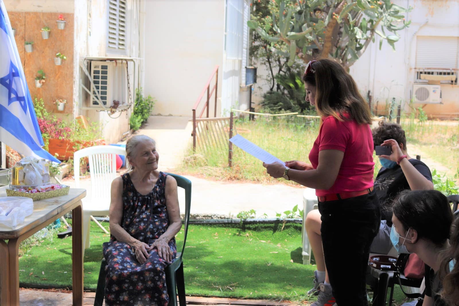 חנה מספרת: "אכן, הגענו בערב לביתה כ 25 מתלמידי הכתה וחגגנו לה 91 וחצי בשירים, נגינה, ריקודים, ברכות וכיבוד שהתלמידים הכינו והביאו.בשבוע שעבר, זכינו לחגוג עימה 92, את החגיגה ערכנו בכניסה לבניין בו היא גרה (עקב נגיף הקורונה) זכינו לשמח אותה ולשמוח יחד איתה, הייתה חגיגה שמחה ומרגשת מאוד. הייתה חוויה נהדרת, מבורכת ומשמעותית. הייתה אוירה נעימה, עם השירים, הנגינה, הברכות והכיבוד. המתנה שהעניקו לה התלמידים, מארז הסבונים, הקרמים, מארז השוקולדים והעוגות, כמובן הוסיפו לשמחה שלה ולהתרגשות.