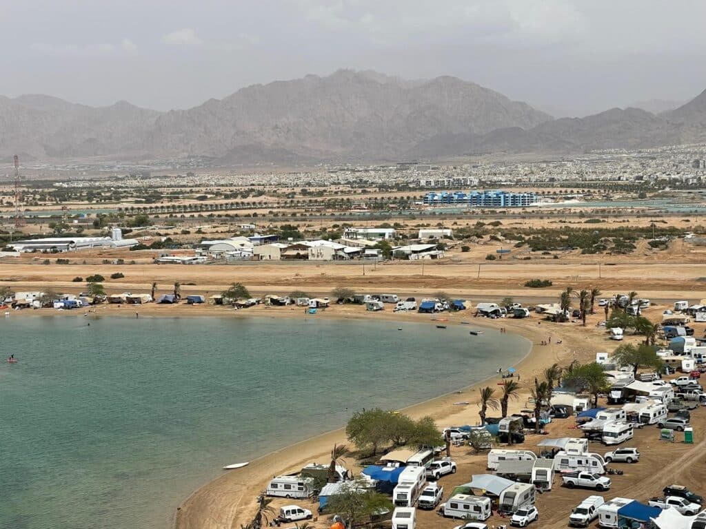 עוד במהלך החג, פקדו אלפים גם את חופי הים המשודרגים. לצד הרוחצים בחופים המוכרזים ובאתרי הצלילה, נפשו אלפים גם באוהלים ובקרוואנים שהוצבו במקומות המותרים: אוהלים בחוף הדרומי וקרוואנים במתחם שהוקצה סביב הלגונה המזרחית. גם שם נשמר הסדר על ידי פיקוח ואכיפה של סיירת התיירות בעירייה. סביב הלגונה המזרחית שהו כ–400 קרוואנים שנכנסו בצורה מבוקרת.