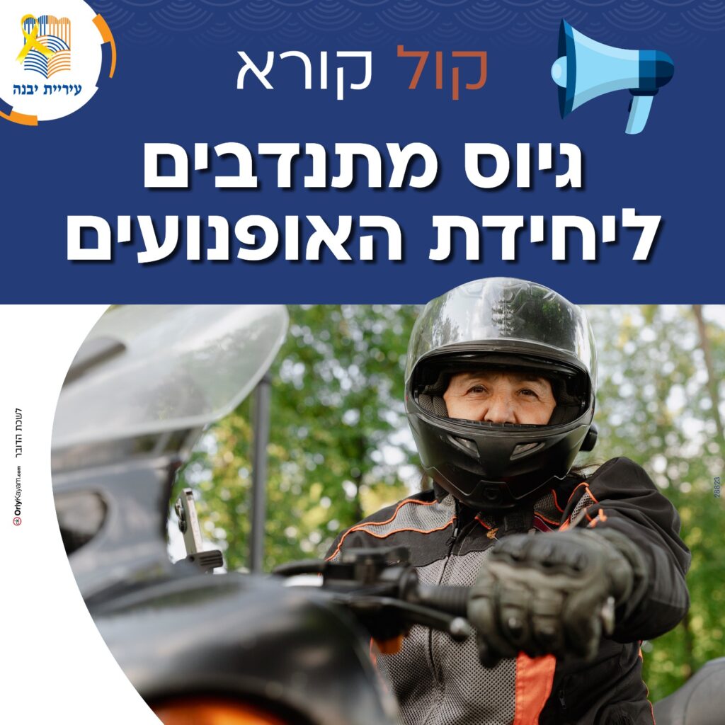 עיריית יבנה יוצא ביוזמה חדשה ומזמינה את תושבי העיר בעלי רישיון על אופנוע לתרום לביטחון הקהילתי: בימים אלה מוקמת בעיר יחידת אופנוענים עירונית שתפעל בשגרה ובחירום ותהווה כוח עזר חשוב לכוחות הביטחון וההצלה. היחידה תורכב ממתנדבות ומתנדבים שיסייעו במתן מענה מהיר בשטח.