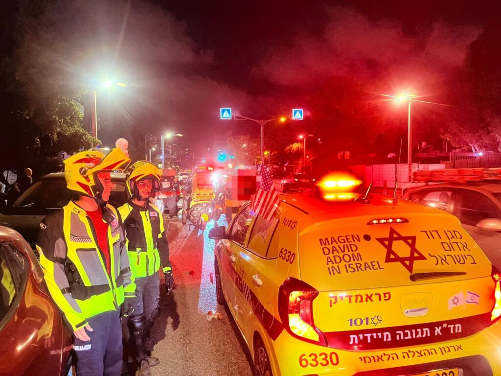 חובשים ופראמדיקים של מד"א מעניקים טיפול רפואי ומפנים לבי"ח וולפסון, אישה כבת 65 במצב קשה עם חבלה רב מערכתית.