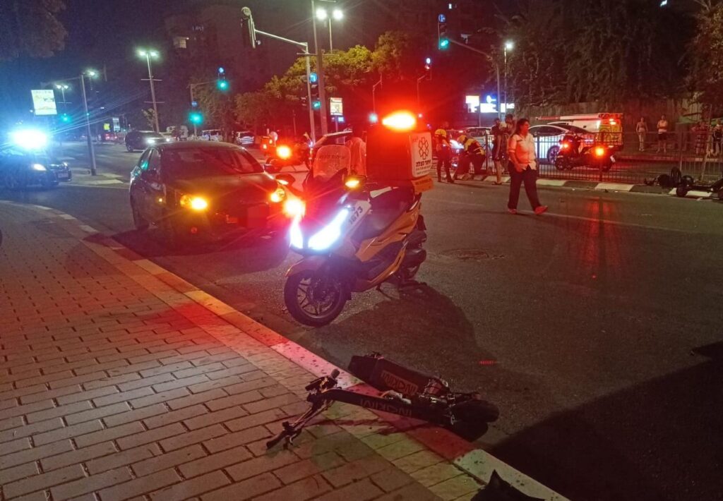 יצחק רבי, ואור דור חובשי איחוד הצלה מסרו: "מדובר בתאונה עם מעורבות רכב וקורקינט חשמלי. בסיוע חובשים נוספים הענקנו טיפול רפואי בזירה לרוכב הקורקינט שנחבל בראשו ולאחר מכן הוא פונה לבית החולים שיבא-תל השומר במצב בינוני. כמו כן נהג הרכב טופל בזירה במצב קל."