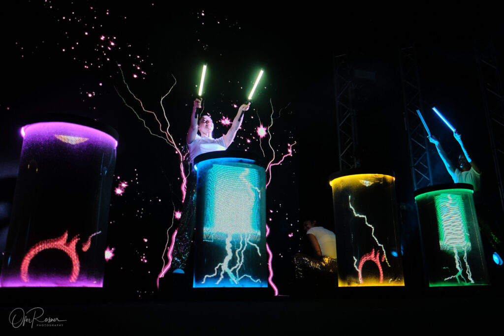 • SKYFALL – מופע מקורי עם רקדניות, רחפנים, מניפות אור ודיאלוג חזותי בין אדם למכונה.