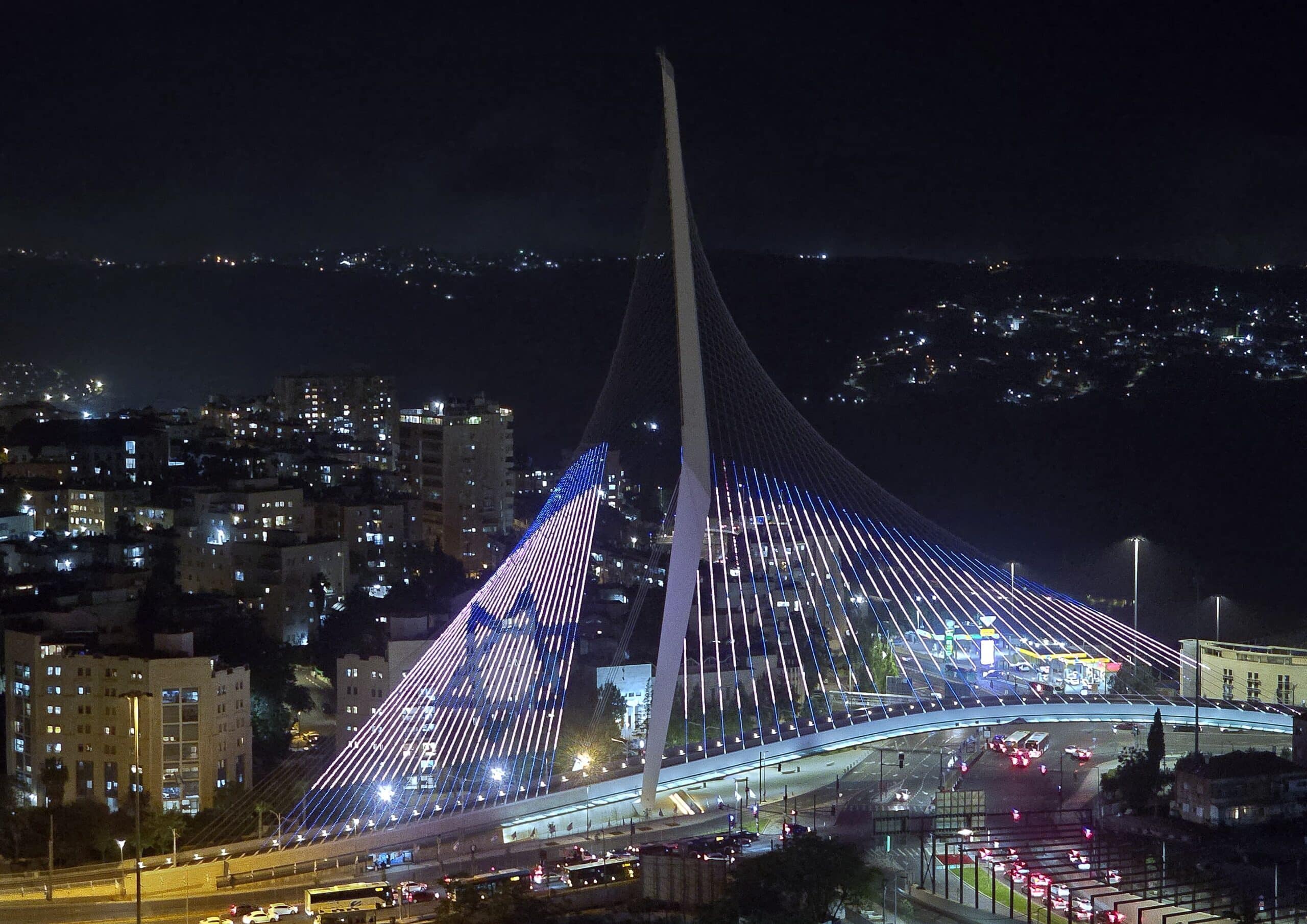 חומות העיר העתיקה וגשר המיתרים הוארו לציון יום העצמאות