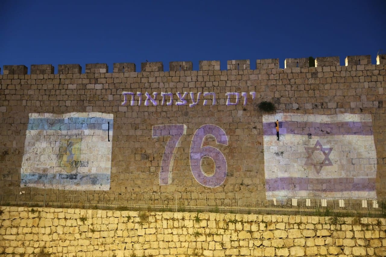 על החומות הוקרנו דגל ישראל, דגל ירושלים וזיקוקים, לצד הכיתוב "76 שנים למדינת ישראל"