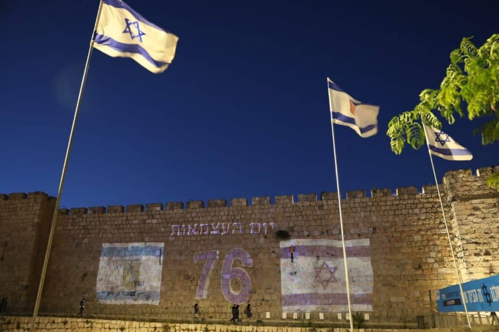 על החומות הוקרנו דגל ישראל, דגל ירושלים וזיקוקים, לצד הכיתוב "76 שנים למדינת ישראל"