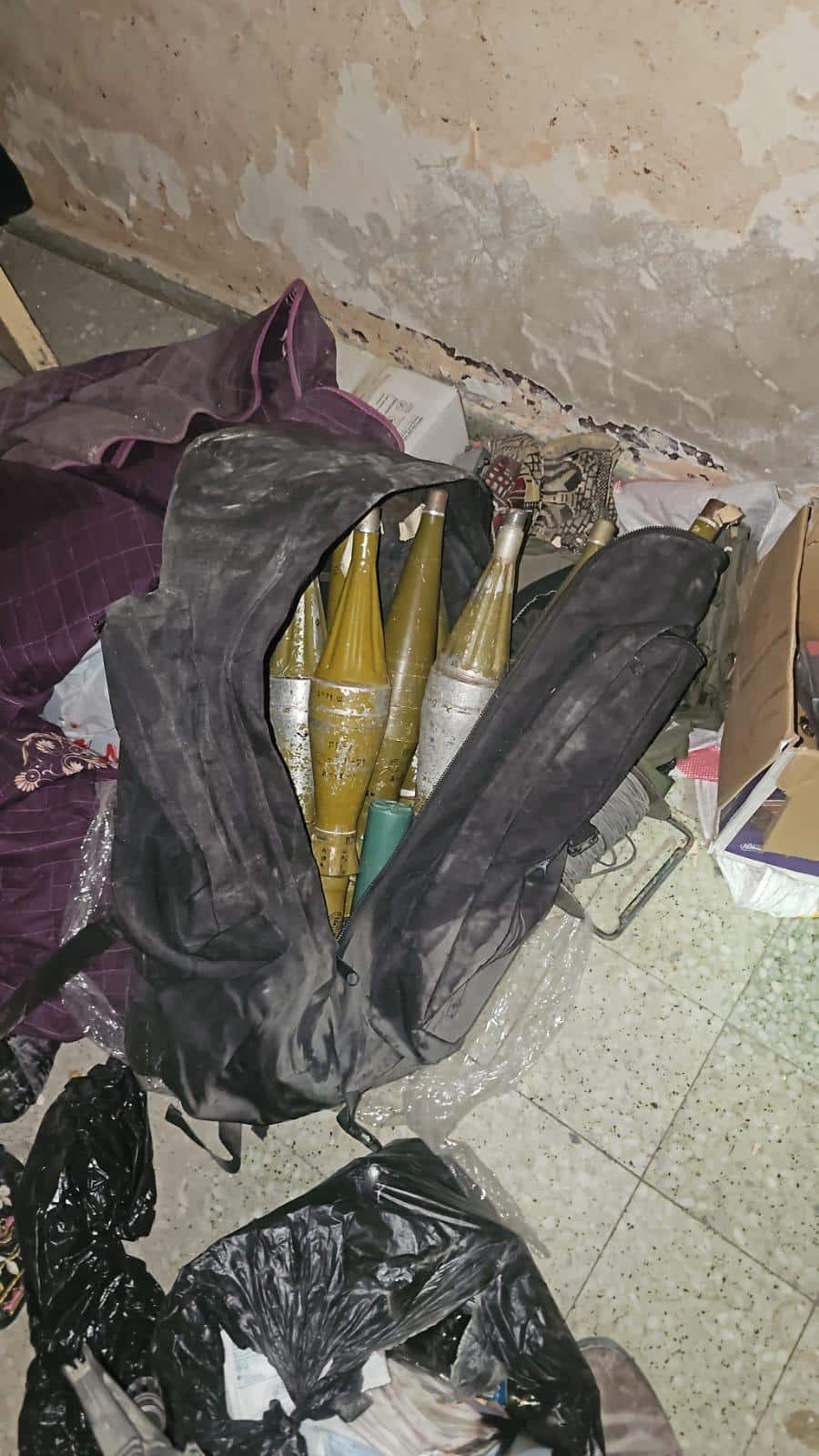 בפעילות נוספת של הכוחות במרחב, איתרו הלוחמים פיר מבצעי, אמצעי לחימה רבים ואמצעים לראיית לילה בחדר ילדים במבנה אזרחי בלב השכונה.