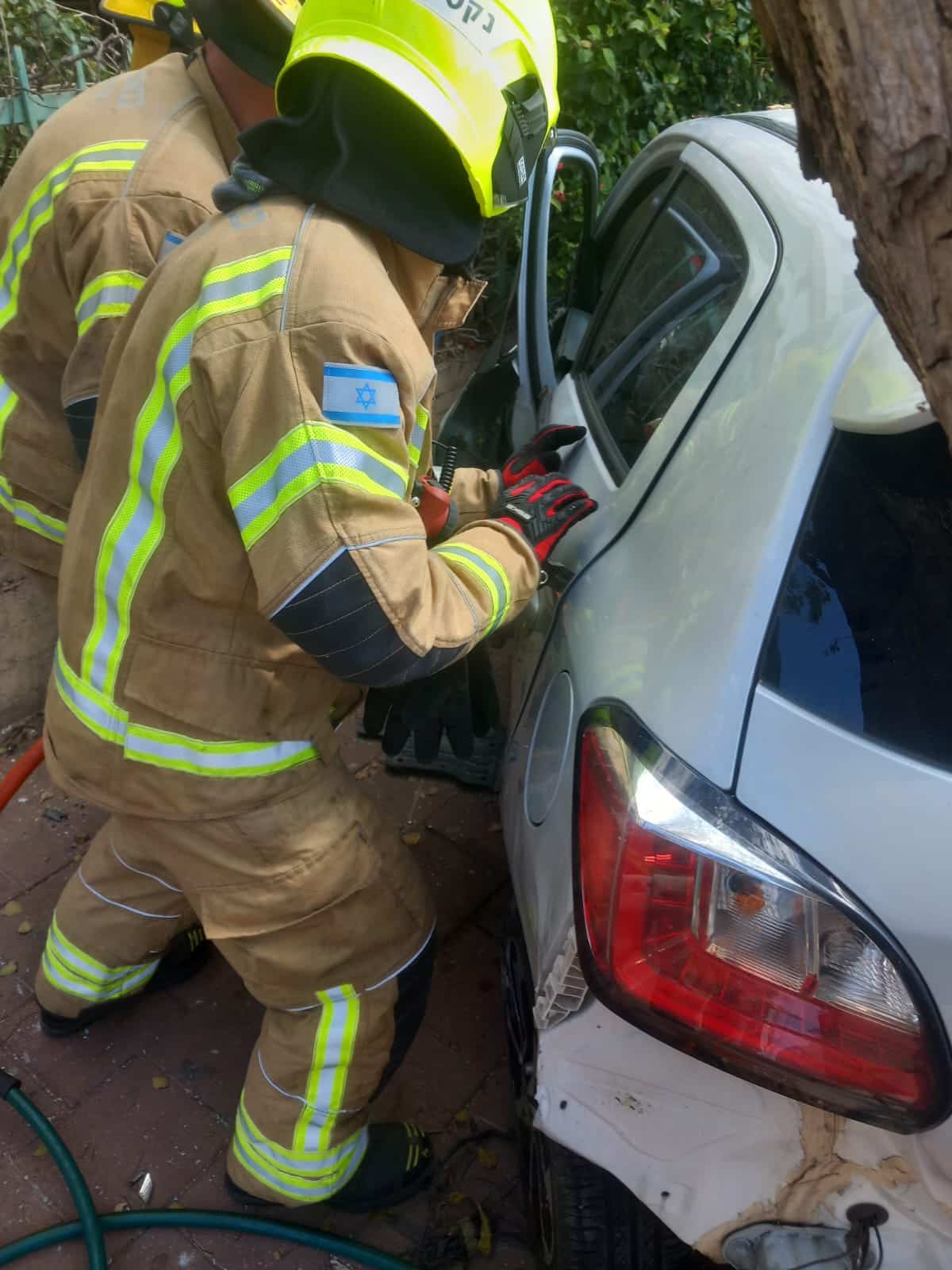 לוחמי אש מתחנת אשדוד יצאו למקום ומיד הבחינו באישה במצב בינינו שהיא לכודה ברכבה.