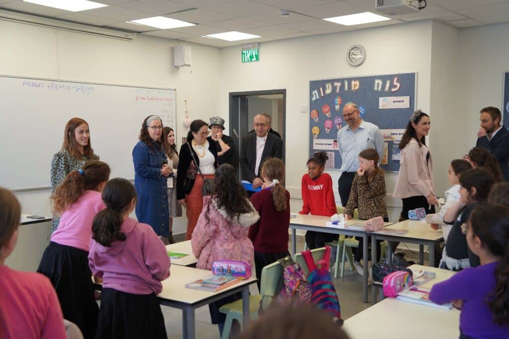 הביקור החל בבית ספר חמ"ד נועם המאירי בנות בניהולה של שלומית בלפר. בית הספר מטמיע בשגרות הלמידה, מיומנויות של מיינדפולנס ולמידה חברתית רגשית באמצעות שימוש בפדגוגיה מתבוננת. הסביבה החינוכית מעודדת הקשבה ככלי לפיתוח חוסן ורווחה נפשית ברמה אישית, הבינאישית והקהילתית. כלים אלו מסייעים לנהל מצבים שבהם מתרחשת הצפה רגשית, במטרה להתפנות ללמידה בצורה מיטבית. תכנית בית ספר סגול מתקיימת בבתי ספר בליווי מרכז לחקר מוח באוניברסיטת רייכמן.