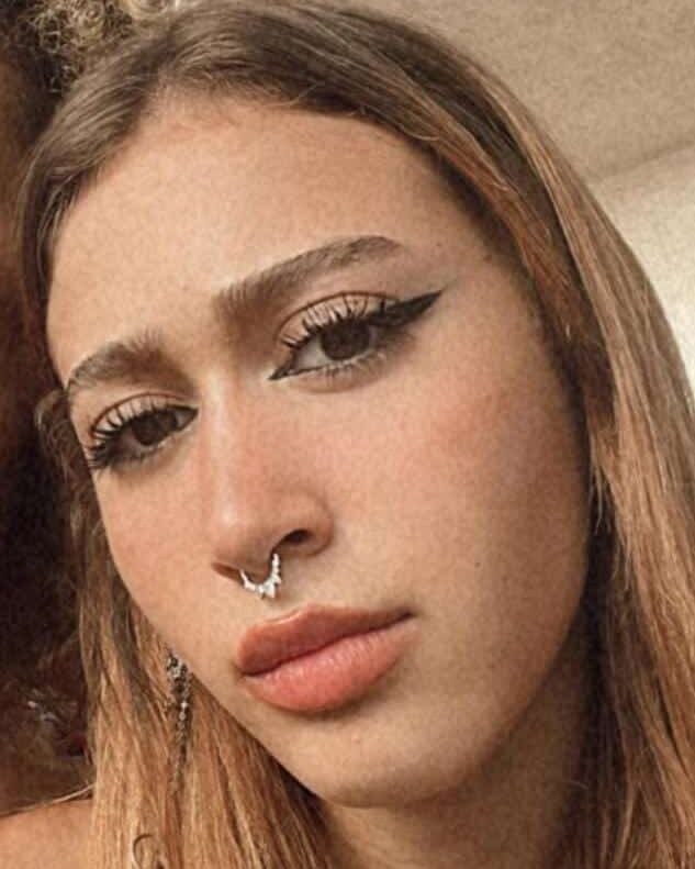 תיאורה: מבנה גוף רזה, גובה 1.65, שיער חום, ראש מגולח בצדדים, עונדת עגילים ופירסינג באף, קעקועים.