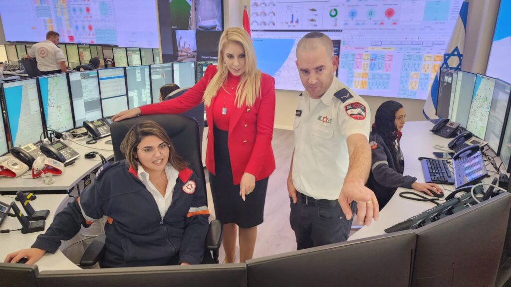 שלי טל מירון, חברת כנסת מטעם מפלגת יש עתיד, ביקרה במוקד הלאומי של מגן דוד אדום בקרית אונו ופגשה את בכירי הארגון של מד״א.