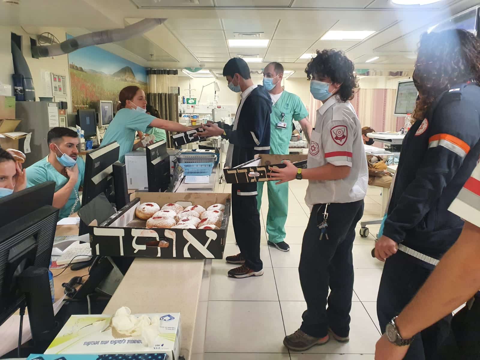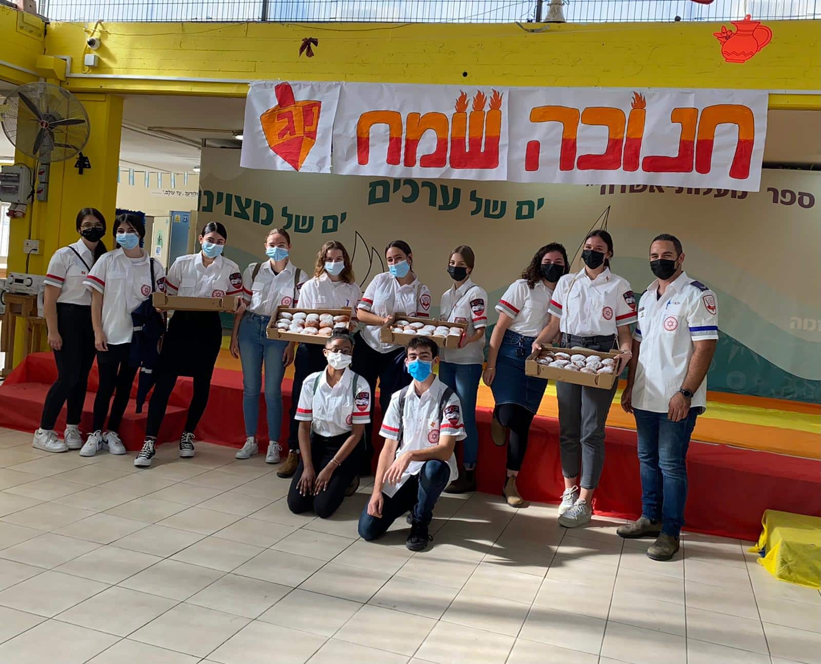 ברמת גן קיימו מתנדבי מד"א מסיבת חנוכה במרכז לקשיש מרום נווה, בבית קסלר שבחיפה, במרכז הרפואי השיקומי בית בלב בנשר ובמרכז אקי"ם בגן יבנה חילקו מתנדבי מד"א סופגניות, בתחנת מד"א בכרמיאל ובקרית מלאכי העבירו מתנדבי מד"א הדרכות עזרה ראשונה לציבור הרחב, בבי"ח איכילוב ובבתי החולים בירושלים שימחו מתנדבי מד"א את הצוותים הרפואיים ואת המאושפזים, בחולון, ברמלה, ברמת גן ובראשון לציון הגיעו מתנדבי מד"א לשמח קשישים וניצולי שואה לכבוד החג, בלוד מתנדבי מד"א הכינו יצירות עם ילדי מועדון נחמ"ד, וכך ביישובים רבים נוספים ברחבי הארץ.