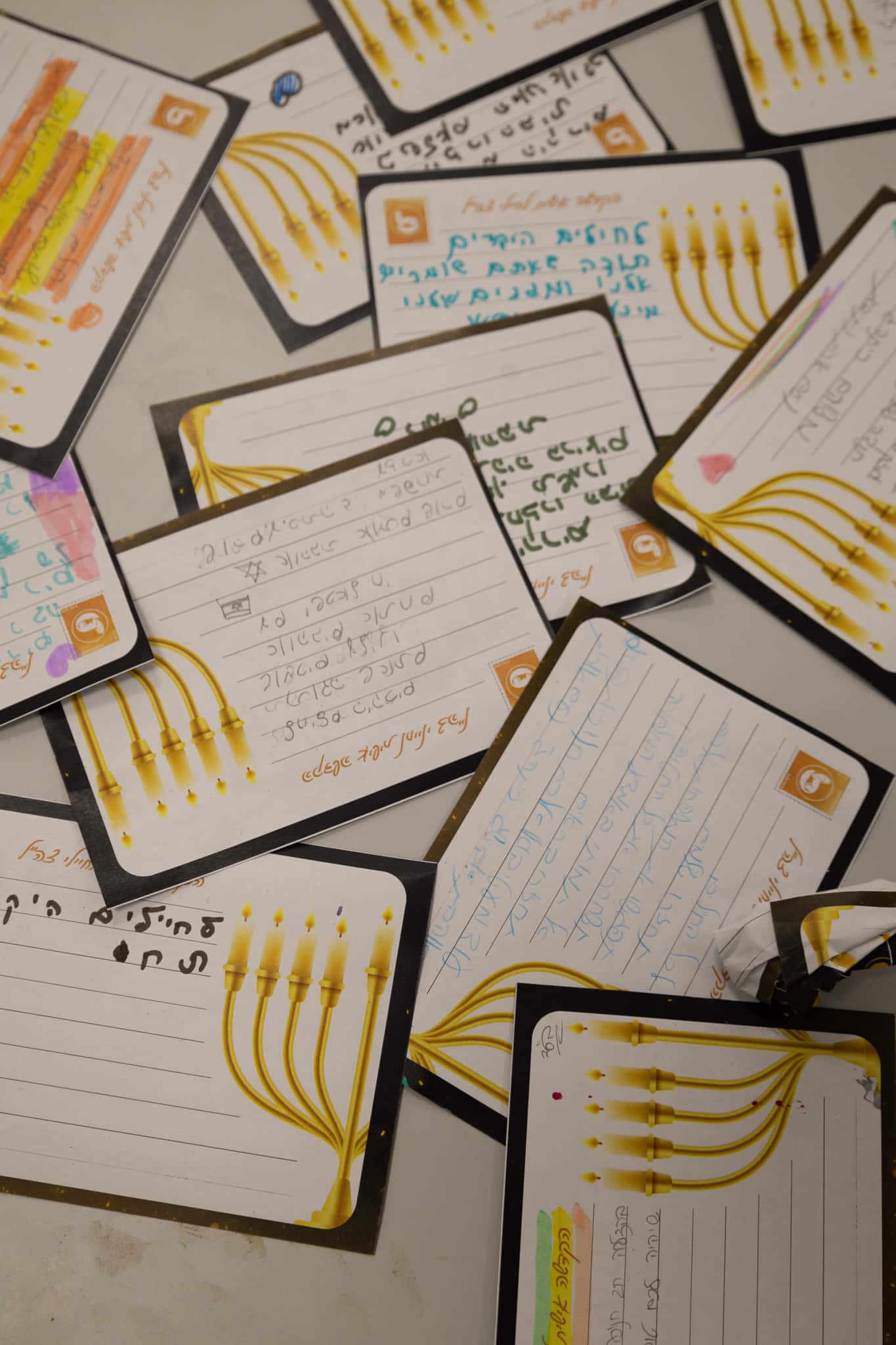כ-800 חנוכיות מקושטות במסרים מחזקים מהעורף הגיעו ללוחמי ולוחמות צה״ל הנמצאים בלב עזה. תוך כדי הלחימה, לוחמי צה"ל הדליקו בהן נרות לכבוד חג החנוכה.