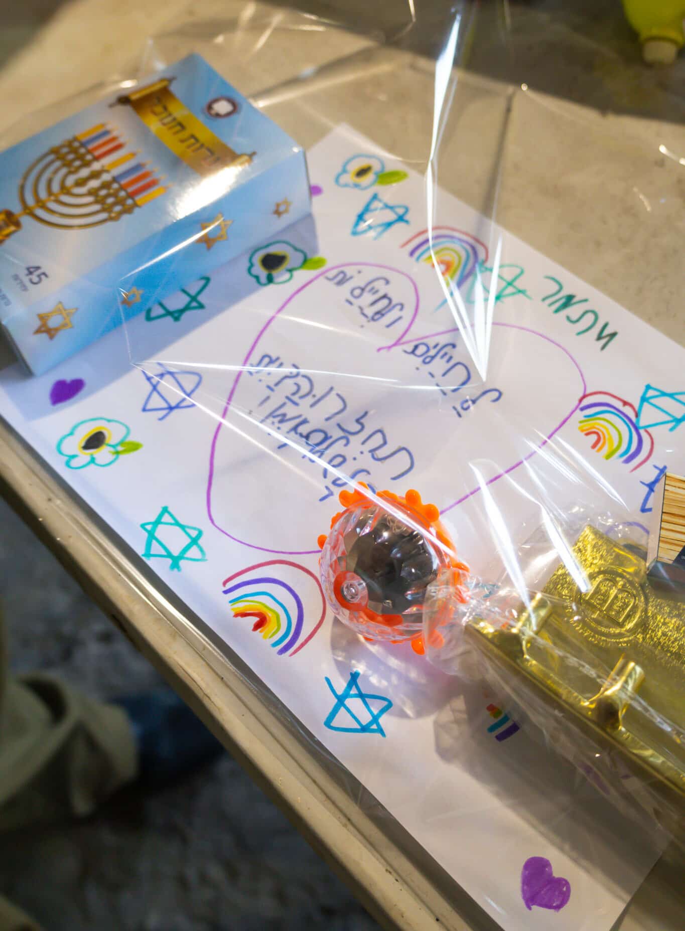 ילדי הקהילות המפונות מהדרום, מעוטף עזה ומגבול הצפון צבעו וקישטו יחד עם סגלי מערך מגן של חיל החינוך והנוער כ-800 חנוכיות עבור הכוחות.