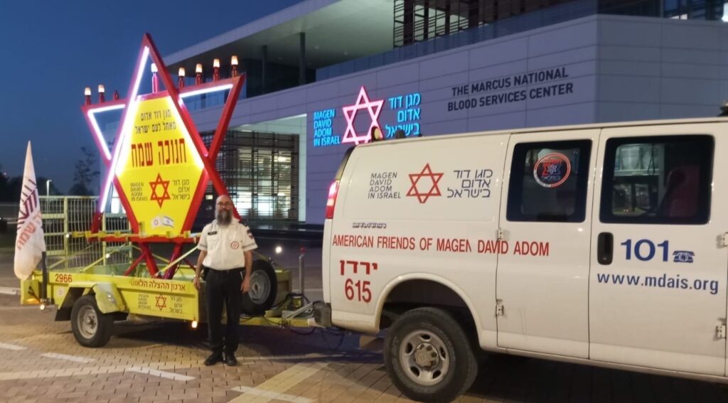 הרב יונתן שפיצר, מתנדב במד"א כנהג אמבולנס, חובש רפואת חירום ומנהל בית חב"ד מד"א. בשיאו של משבר הקורונה יזם שפיצר פרויקט מיוחד – במסגרתו הוא נע ברחבי הארץ עם אמבולנס-חנוכייה על מנת להביא את רוח החג לצוותי מד"א שעבדו מסביב לשעון. מאז, הפרויקט הפך למסורת וזו השנה הרביעית בה חנוכיית ענק מחוברת לנגרר האמבולנס של מד"א – אותה מסיע שפיצר בתחנות מד"א הפזורות ברחבי הארץ.