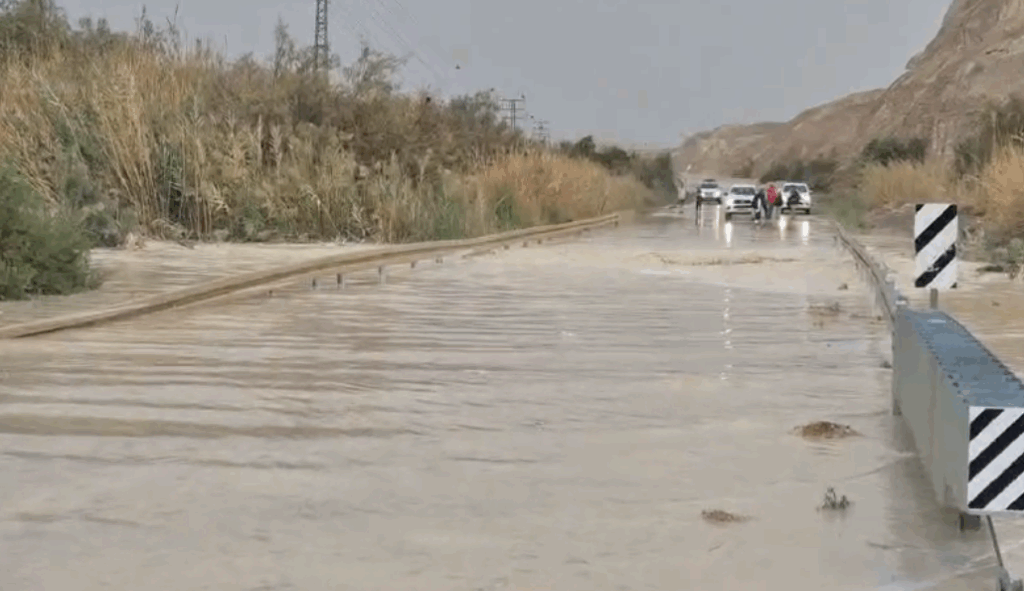 כביש 90 חסום מצומת נווה זוהר עד הכניסה למפעלי ים המלח עקב שיטפון