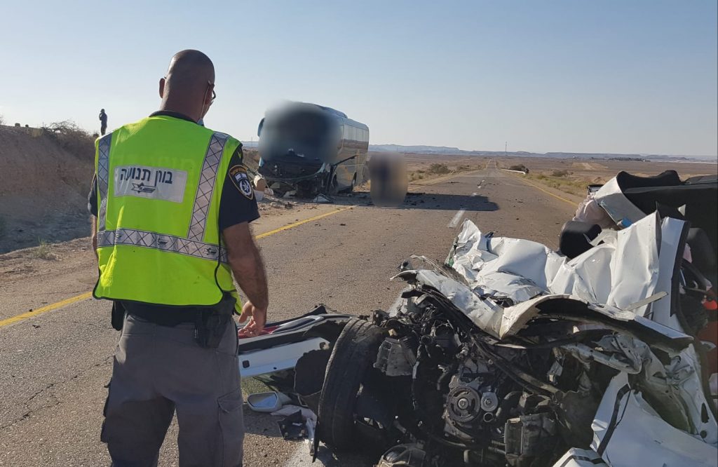 היום (30.6.20) בסמוך לשעה 16:00 התקבל דיווח במשטרת ישראל על תאונת דרכים בכביש 40, בין בסיס שיזפון לישוב שיטים . בוחני התנועה של משטרת ישראל הגיעו לזירה והחלו בחקירת נסיבות התאונה. על פי החשד הראשוני עולה כי מדובר בתאונה חזיתית כתוצאה של סטייה מנתיב של אחד מכלי הרכב מסיבה שאינה ברורה. נהג הרכב הפרטי נהרג, 9 מנוסעי האוטובוס נפצעו ופונו לקבלת טיפול רפואי בבית החולים "יוספטל" באילת.