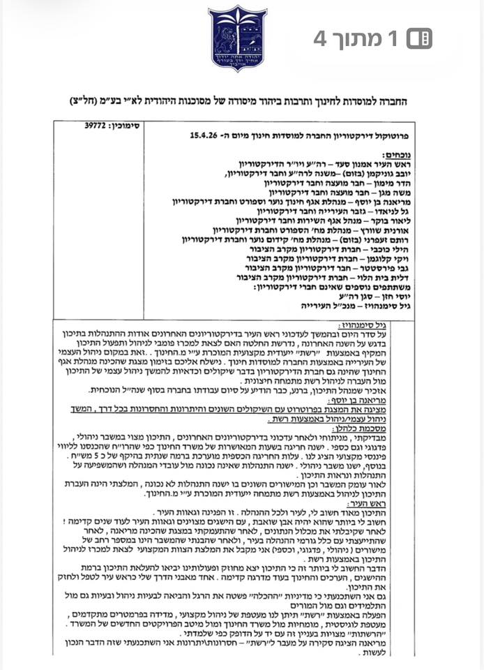 מערכת החינוך ביהוד-מונוסון עומדת בפני טלטלה משמעותית: פרוטוקול ישיבת הדירקטוריון של "החברה למוסדות חינוך ותרבות" (ישיבה 03/24) שנחשף כאן, מציג תמונת מצב מדאיגה בתיכון המקיף בעיר. על פי המסמכים, התיכון נמצא בעיצומו של משבר עמוק המשלב היבטים ניהוליים, פדגוגיים ותקציביים, מה שהוביל להחלטה דרמטית: הוצאת ניהול בית הספר למכרז פומבי לידי רשת חינוך ארצית.