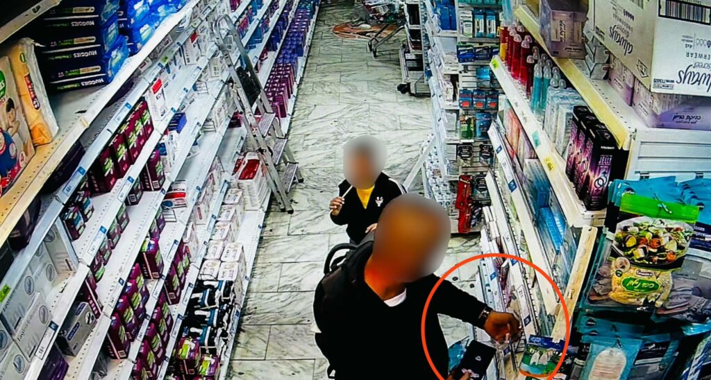 בין מעשיו, הסיר את עטיפת המוצר עליה מדבקת ׳זמזם׳ שמטרתה מניעת גניבה, ואת העטיפה הסתיר בין מוצרים במדף. בשלב מסוים ולאחר שהבין כי העובדים חשדו במעשיו והבחינו בו מכניס בשמים לתיק, התעמת ותקף אותם החשוד.