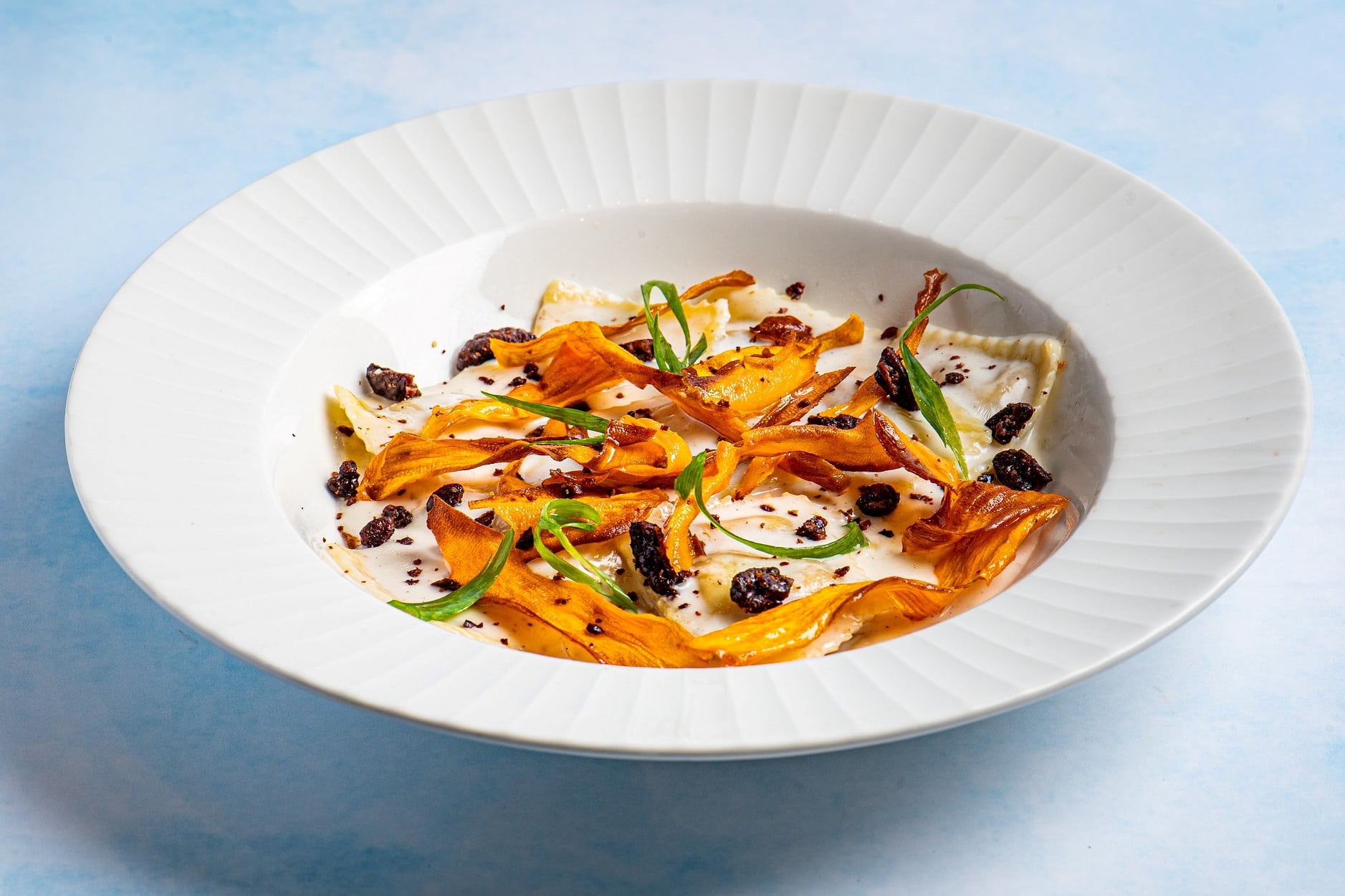 או לשלב עם הפיצה מנה של רביולי קלילה וכיפית כמו רביולי הבטטה שלנו שמלווה בחמאה , שום , רוטב אלפרדו, ציר ירקות, שברי פקאן סיני , צי'פס בטטה ופרמז'ן. 71 ₪.