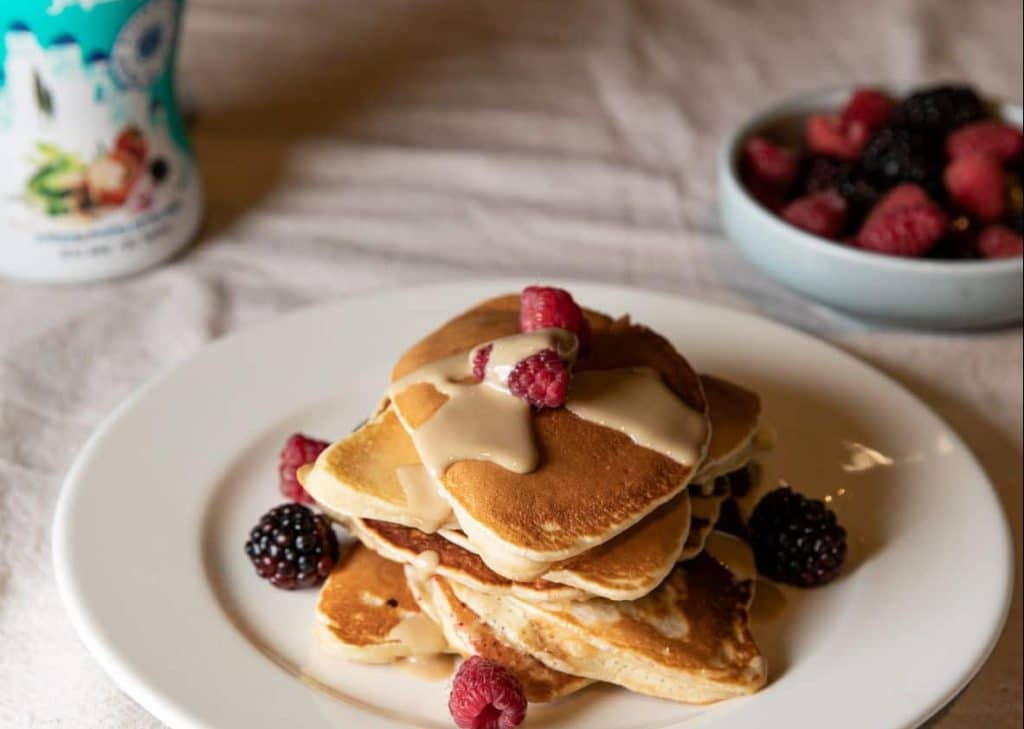 - מערבבים טחינה גולמית עם מעט סוכר ומוזגים מעל ערימת הפנקייקים. מקשטים עם פירות יער טריים ומגישים.