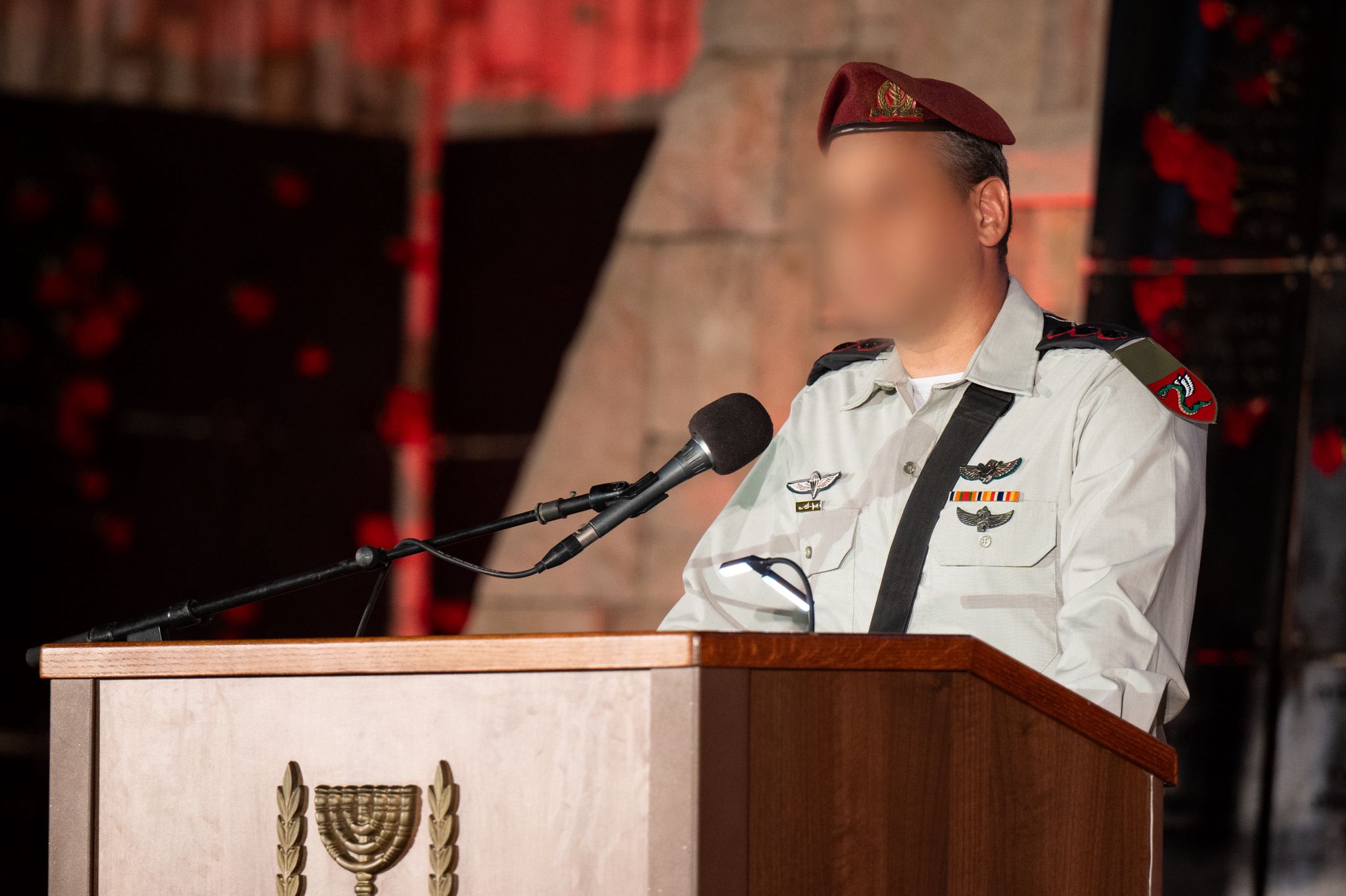 מדברי מפקד חטיבת הצנחנים (35), אלוף-משנה ר׳: "המילה 'אחריי' הפכה לערך מוביל שדורות של הצנחנים שהתחנכו לאורו. המילה 'אחריי' תובעת מהצנחן אומץ לב ודוגמא אישית. יש למילה 'אחריי' ולמה שהיא מבטאת גם מחיר כבד. גם כיום אנו נמצאים כבר שנתיים במלחמה שאין צודקת ממנה. מלחמה שנפתחה בהפתעה גמורה בבוקר שמחת תורה, כאשר התייצבו הצנחנים בסדיר ובמילואים ולחמו בישוביי העוטף כבר משעות הבוקר המוקדמות. משם המשכנו ברצף בלחימה בארבע חזיתות: בעזה, לבנון, בסוריה ויהודה ושומרון. משפחות יקרות ואהובות, עם רבות מכן שוחחתי בחודשים האחרונים, על אחדים מבניכם פיקדתי אישית ואני עומד פה לפניכם לא רק כמפקד חטיבת הצנחנים אלא גם כאב צעיר במדינת ישראל. בכל שיחה איתכן הרגשתי את הכאב האדיר שבאובדן. כולם, כל הצנחנים, מימשו הלכה למעשה את הציווי 'אחריי' בחייהם. משפחות יקרות, יקיריכם – יקיריינו בסדיר ובמילואים שהתנדבו ולחמו בשורות הצנחנים לא לשווא נפלו. בעבודה קשה ובמחירים כבדים בנינו ארץ, ולה חומת מגן. כשאחד מאיתנו נופל אנו מרכינים את ראשנו, זוכרים לעד וממשיכים קדימה להגן על עמנו. צודקת דרכנו ולנו הכוח והעוז. איננו עייפים מהמסע ואנו ננצח את אויבינו, נכריעם ונשיב את אחינו החטופים לחיק ישראל. אני עומד כאן לפניכם לא לבד. אני מייצג את כלל מפקדיי חטיבות הצנחנים לדורותיהם ואת מפקדי הפלוגות והגדודים, שיושבים ביניכם. אני מבקש לומר סליחה שלא הצלחנו להשיב את הנופלים אליכם, אך אני מתחייב שנמשיך ללוותכם".