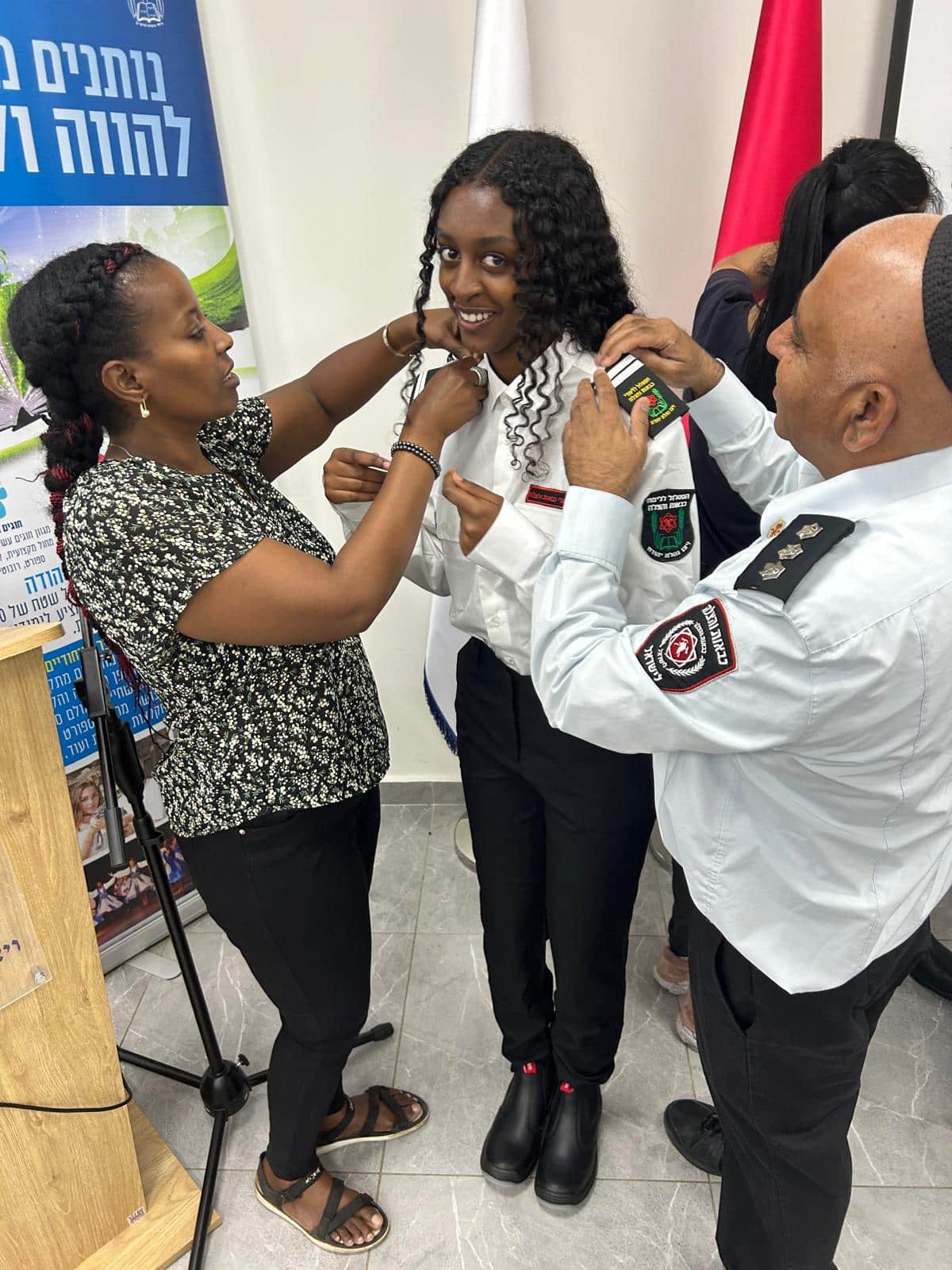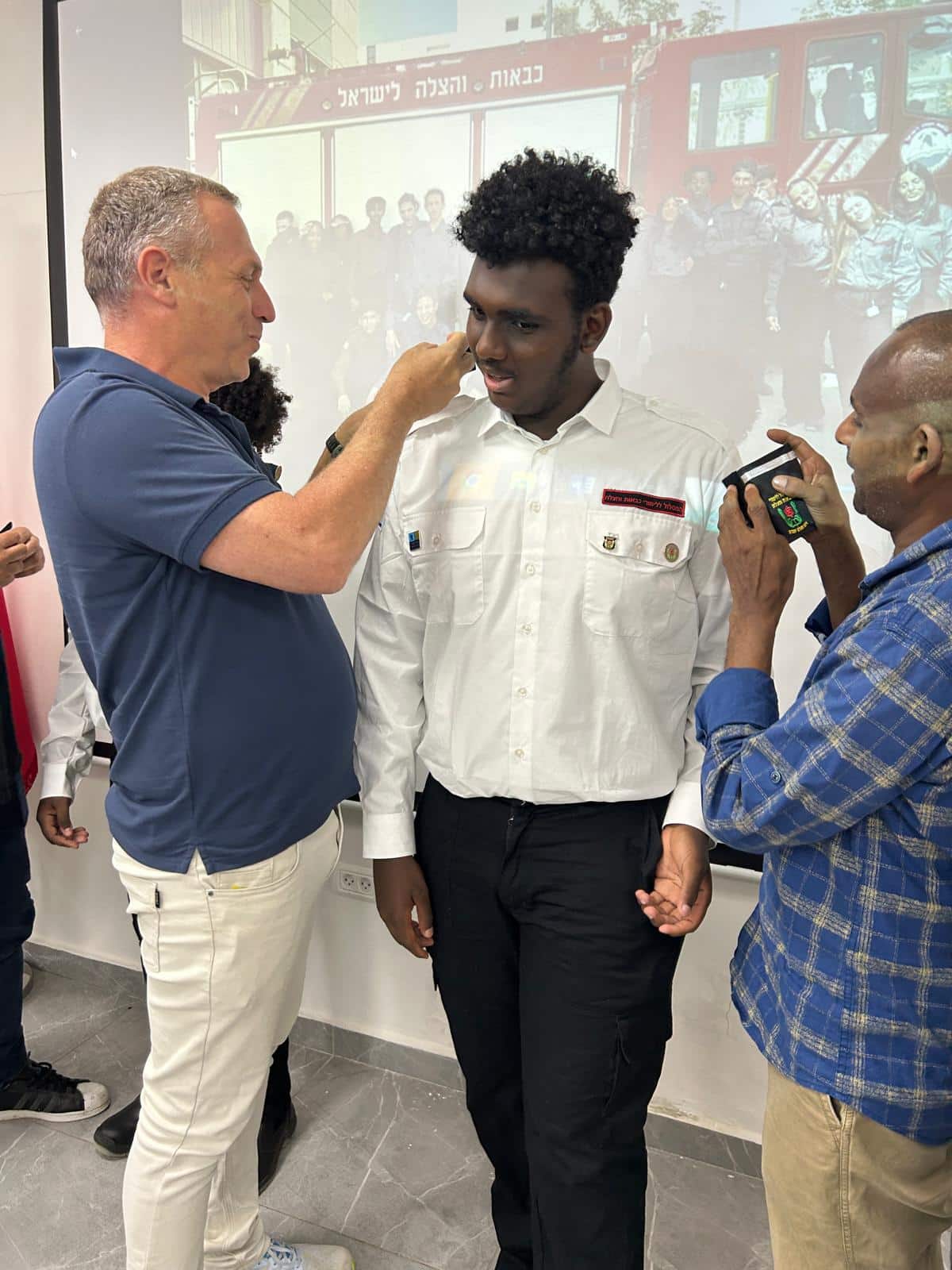 מנהל התיכון צחי צור-טל הביע את גאוותו בתלמידים וסיפר על חשיבות התפקיד של לוחמי האש במדינת ישראל ועל משמעות המדים והדרגות.