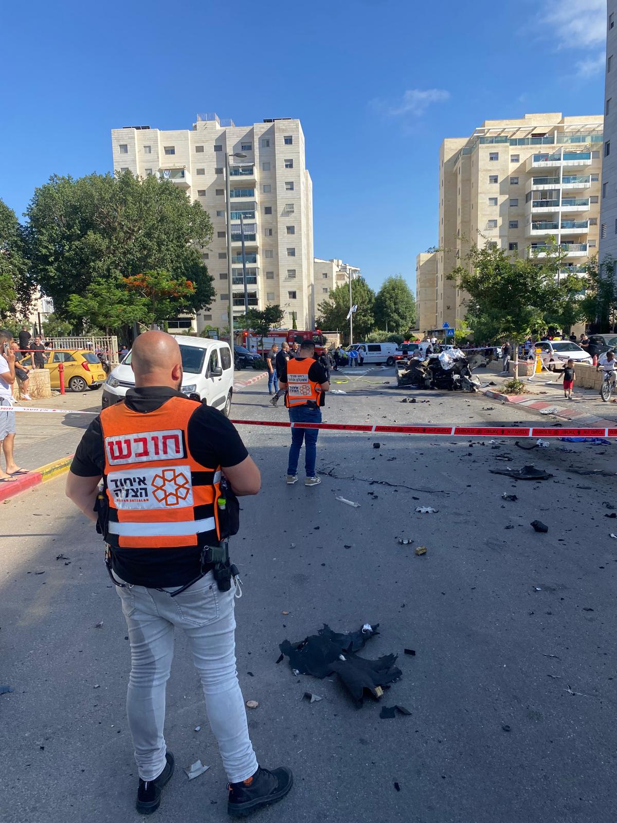 גבר כבן 45 וגבר כבן 28 שסבלו מכוויות היו בסמוך לרכב. הענקנו טיפול רפואי לפצועים והם פונו לבית החולים כשמצבה של הילדה אנוש והגברים בינוני. לאחר תום פעולות כיבוי הרכב אותרה בתוכו צעירה כבת 20 ללא סימני חיים ומותה נקבע במקום. מספר עוברי אורח נפגעי חרדה מטופלים במקום"