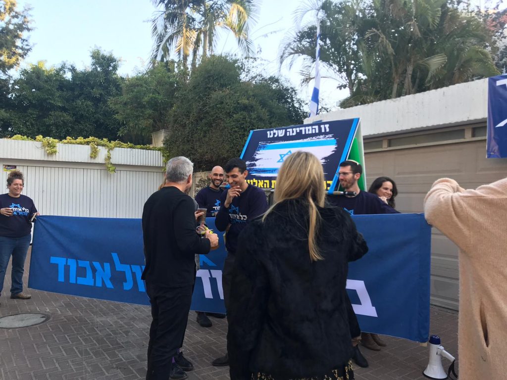 הבוקר (רביעי) הפגינו כ-20 פעילי יוזמת "בלי איחוד – הקול אבוד" מול ביתו של יאיר לפיד.