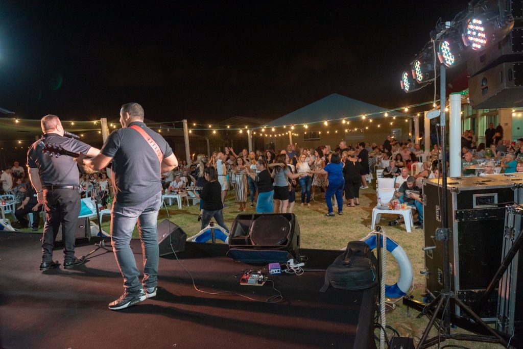 בשעות הערב המוקדמות החלו להגיע תושבים רבים למתחם קאנטרי גן יבנה לקראת תחילת הערב שכלל את המופע של הזמר איזקיס. מתחם הדשא של הקאנטרי עבר הסבה למתחם הופעות יווני כולל תאורה מיוחדת, עמדת צלם מגנטים, הנחת מזטים ואוזו על השולחנות ועיצוב ייחודי.