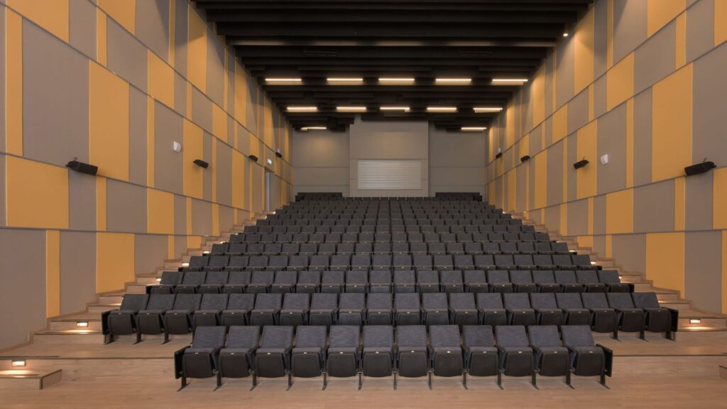 האולם החדשני כולל 300 מקומות ישיבה, תוכנן על ידי ח"ן אדריכלים ומאובזר במערכות תאורה, הקרנה ונגישות מן המתקדמות בתחום. החלל נבנה בסטנדרט מוקפד עם קירות וחיפויים (קבוצת הכט & אפרים) שמשלבים נראות רעננה ומודרנית ועם ביצועים אקוסטיים גבוהים המאפשרים חוויית צליל נקייה, תוך התאמה לעירוב שימושים כגון מופעים, הרצאות, טקסים ואירועים קהילתיים. המקום החדש יהווה תשתית איכותית לפעילות עירונית רחבת היקף, יאפשר מענה לשימוש בית הספר בשעות הלימודים ומרכז תרבות בשעות אחר-הצהריים. המקום יאפשר הקרנות בכורה וטרום בכורה של סרטי קולנוע לילדים, נוער ומבוגרים, הקרנת סרטי קולנוע ישראלי ופאנלים בהשתתפות שחקנים, סדרת הרצאות בתחומים מגוונים, ערבי תרבות, מופעי סטנדאפ ועוד.