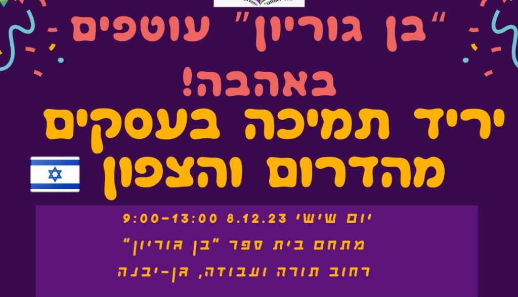 מיזם שהן מרימות בביה'ס "בן גוריון" בשת"פ עם הצוות והמועצה המקומית גן יבנה, לטובת תמיכה בעסקים מהדרום ומהצפון.
