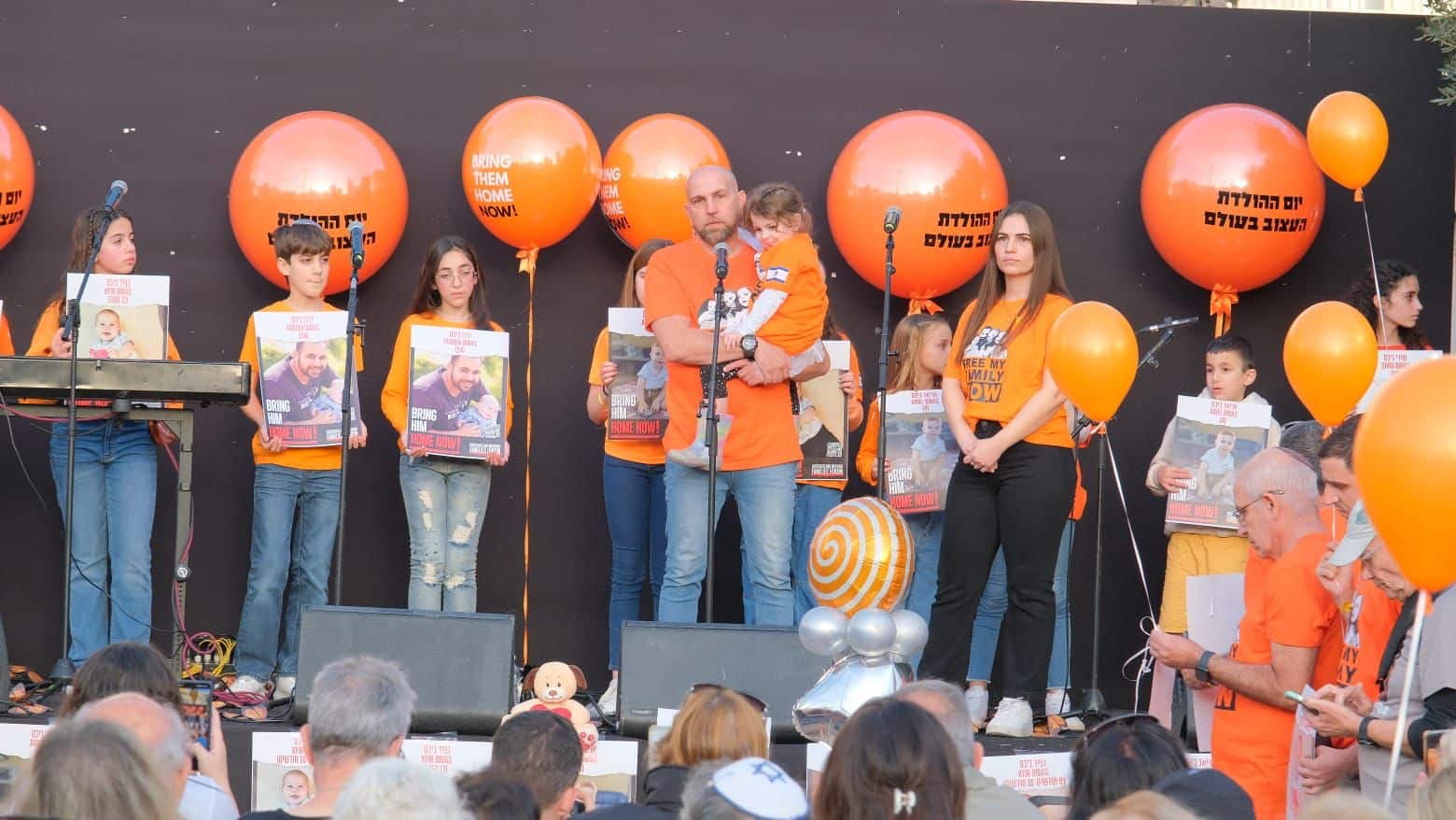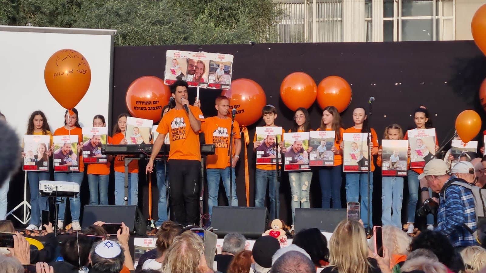 "יום ההולדת העצוב בעולם": משפחת ביבס ציינה לכפיר יום הולדת שנה בכיכר החטופים, במקביל להכנסת התרופות לחטופים בפעם הראשונה.