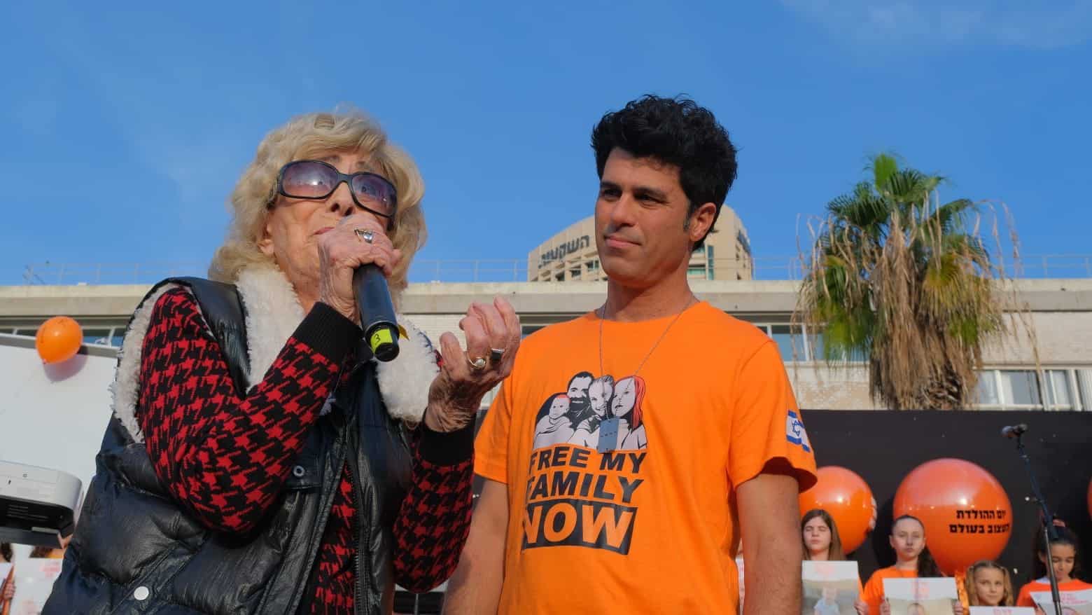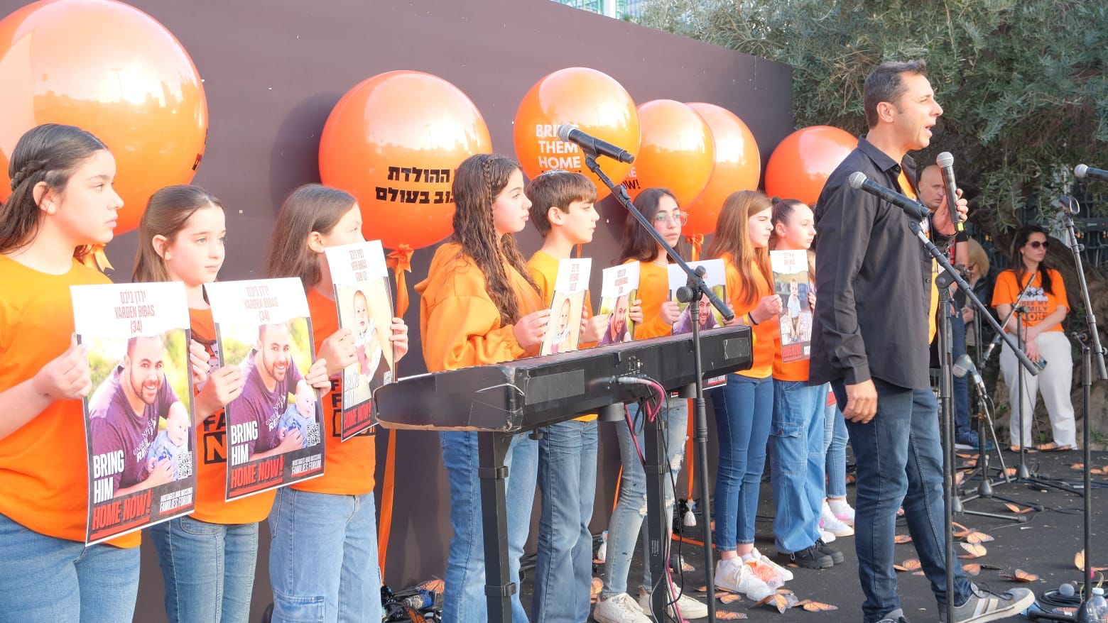 יוסי ביבס, בן דוד של שירי ביבס: "ילד מגיל 9 חודשים עד שנה אמור לראות הרבה צבעים ובמקום זה הוא רואה רק חושך, הוא אמור להתחיל ללכת אבל אין לו מקום לעשות את זה. הוא אמור לטעום טעמים חדשים אבל אין לו שם אוכל. הוא אמור לשמוע סיפורים ובמקום זה הוא שומע רעשים של בומים וצעקות בערבית. את סינוואר ואת החמאס אפשר לחסל בכל רגע נתון. לכפיר ואריאל אין זמן. כל יום שעובר אנחנו מאבדים עוד חטוף ואסור לשכוח מה עובר עליהם. אני לא יודע אם שירי יודעת שזה ה-18 בחודש ושזה יום ההולדת של כפיר. אני רוצה להגיד להם שיהיו חזקים ואנחנו עושים הכל כדי להחזיר אתכם".