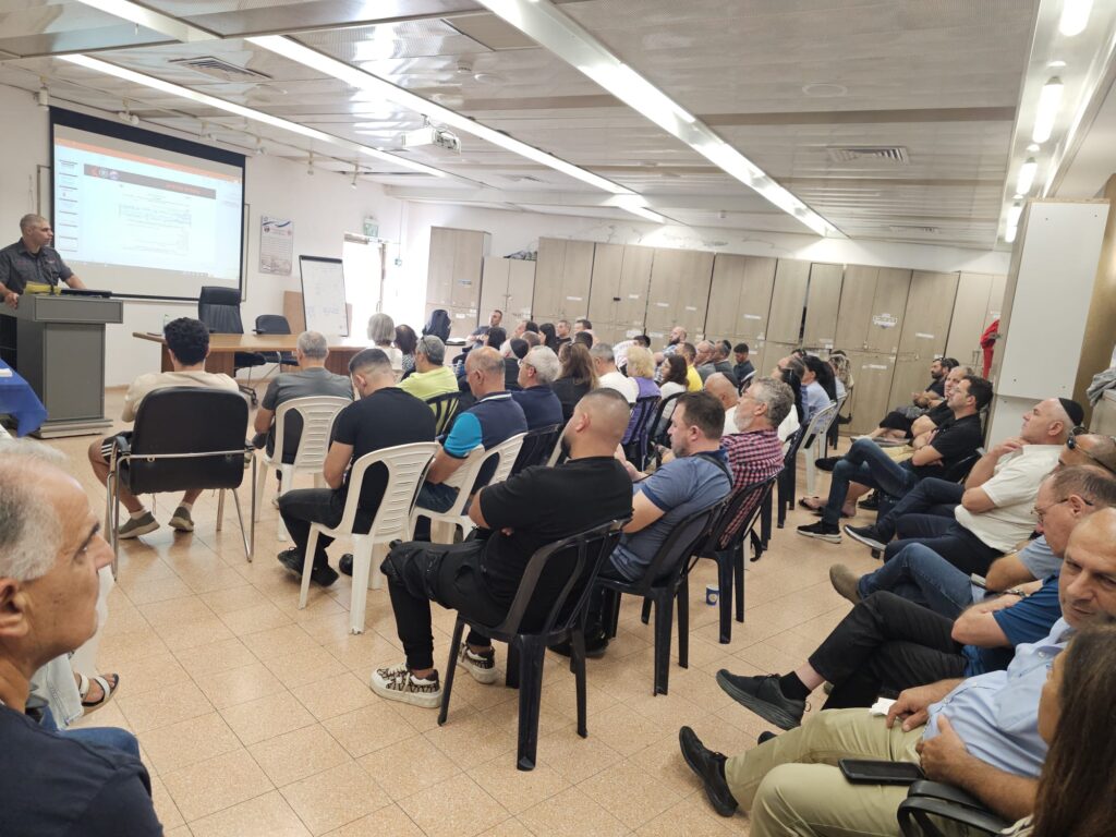 רס"ר איציק חנסב, רמ"ד הגנה מאש, העביר את ההרצאה המרכזית בנושא מניעת דליקות, דרישות כיבוי אש מבעלי עסקים ודרכי הקשר בין הכבאות לבעלי העסקים.