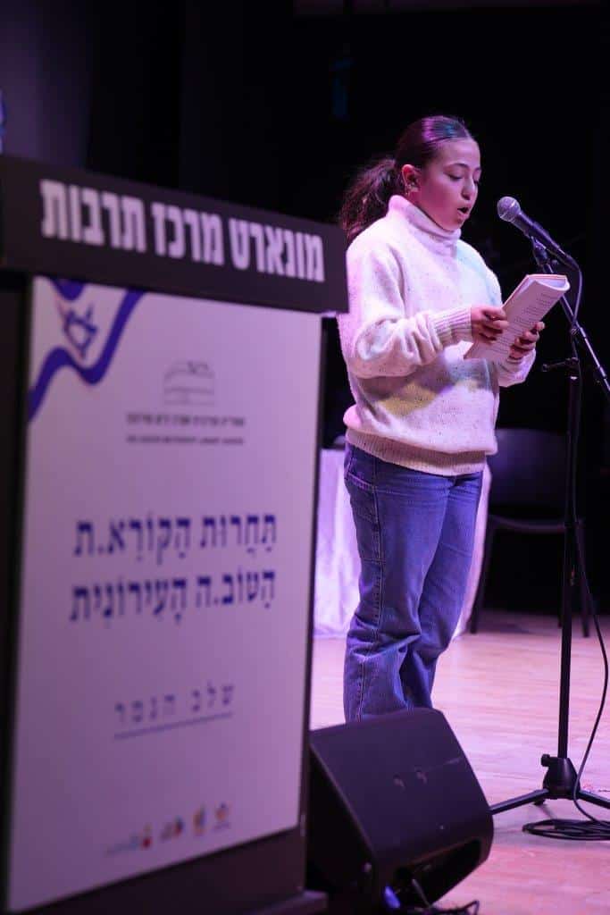• מקום שני – מאיה טולמסוב, ביה"ס יח"ד. קראה מתוך הספר "עץ הדומים תפוס".