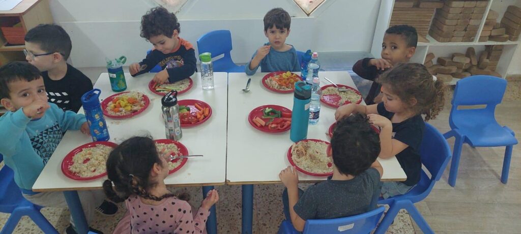 ילדי צהרוני רשת חוויות עוברים להזנה בכלים רב פעמיים